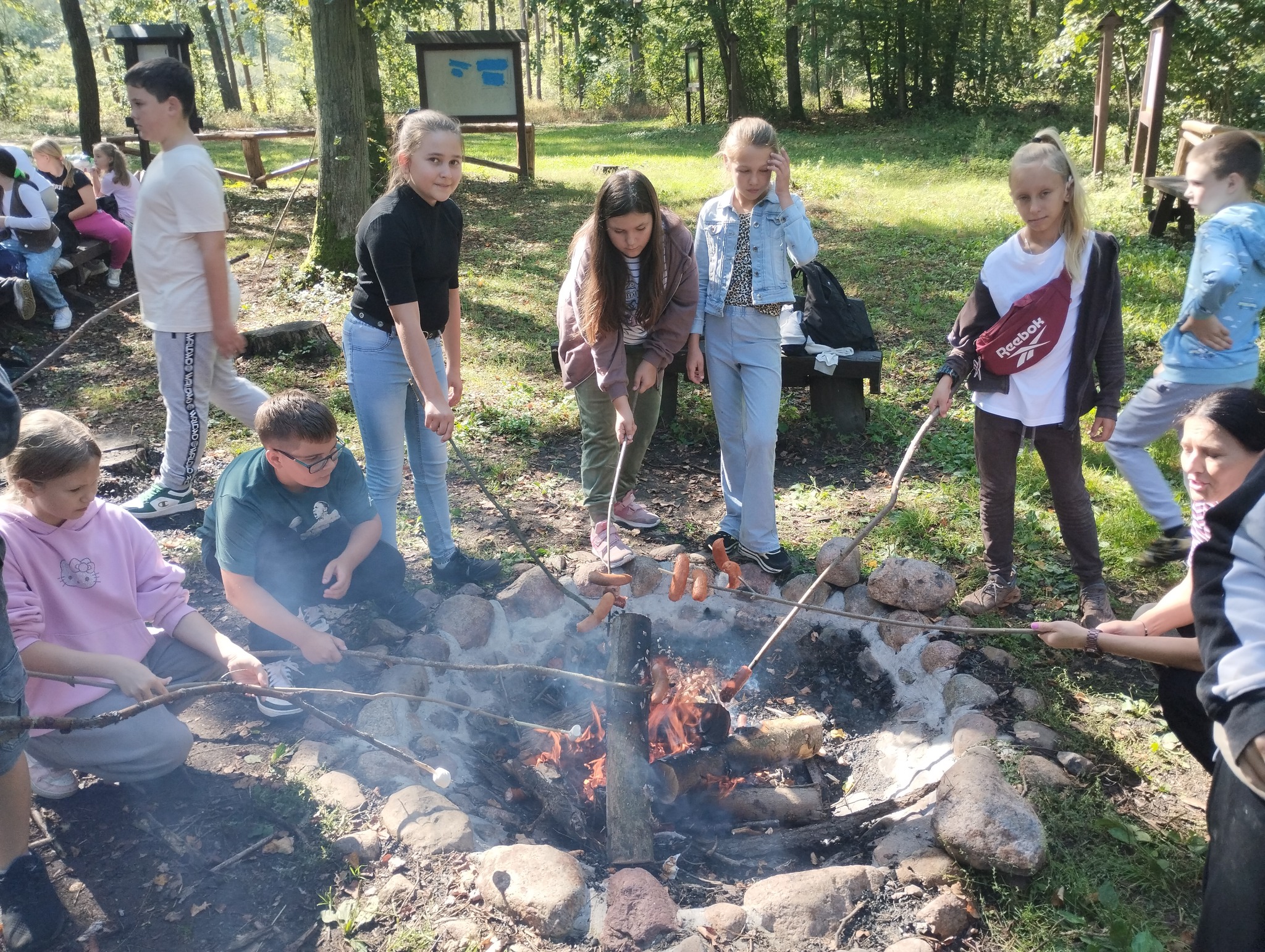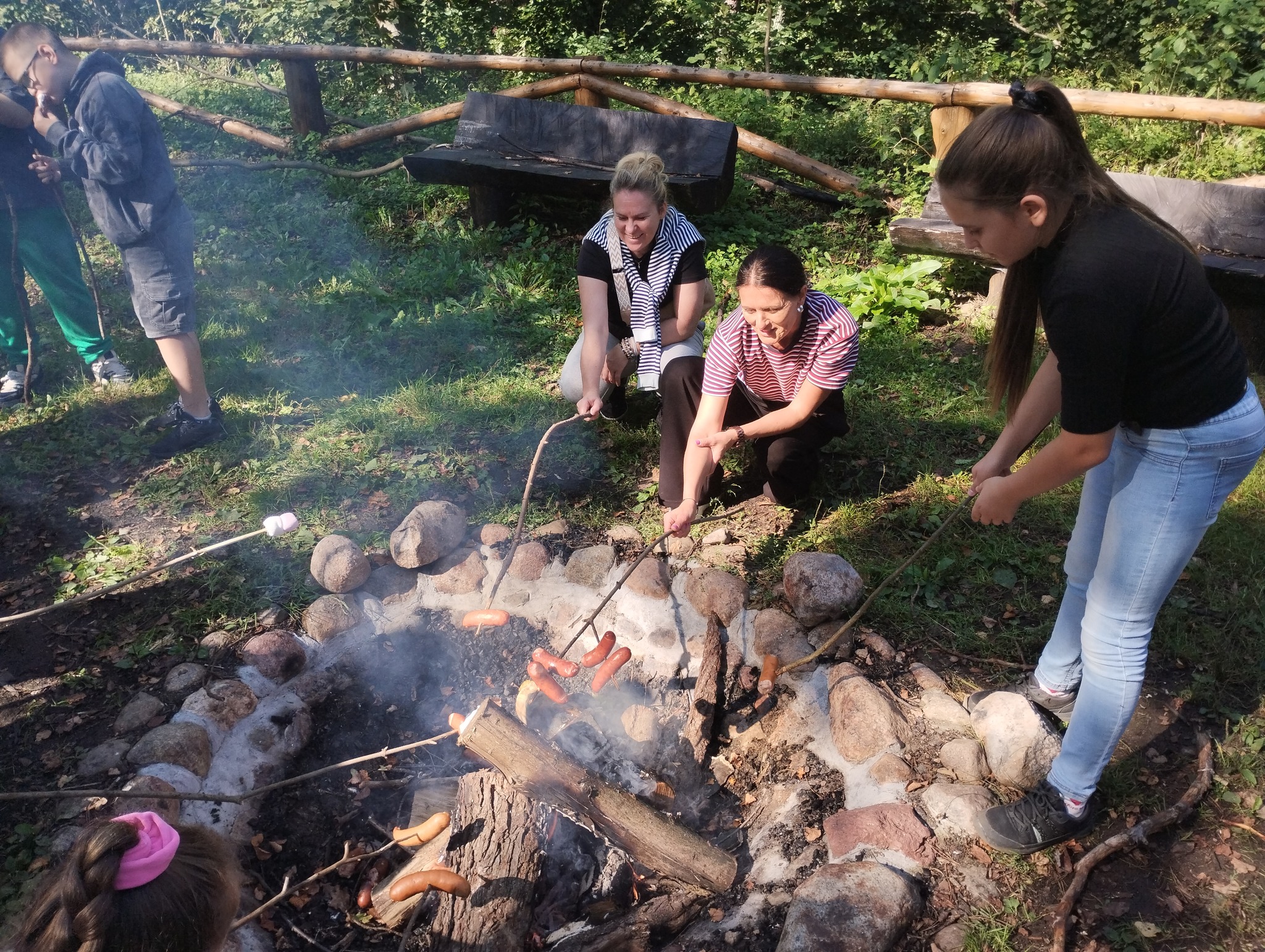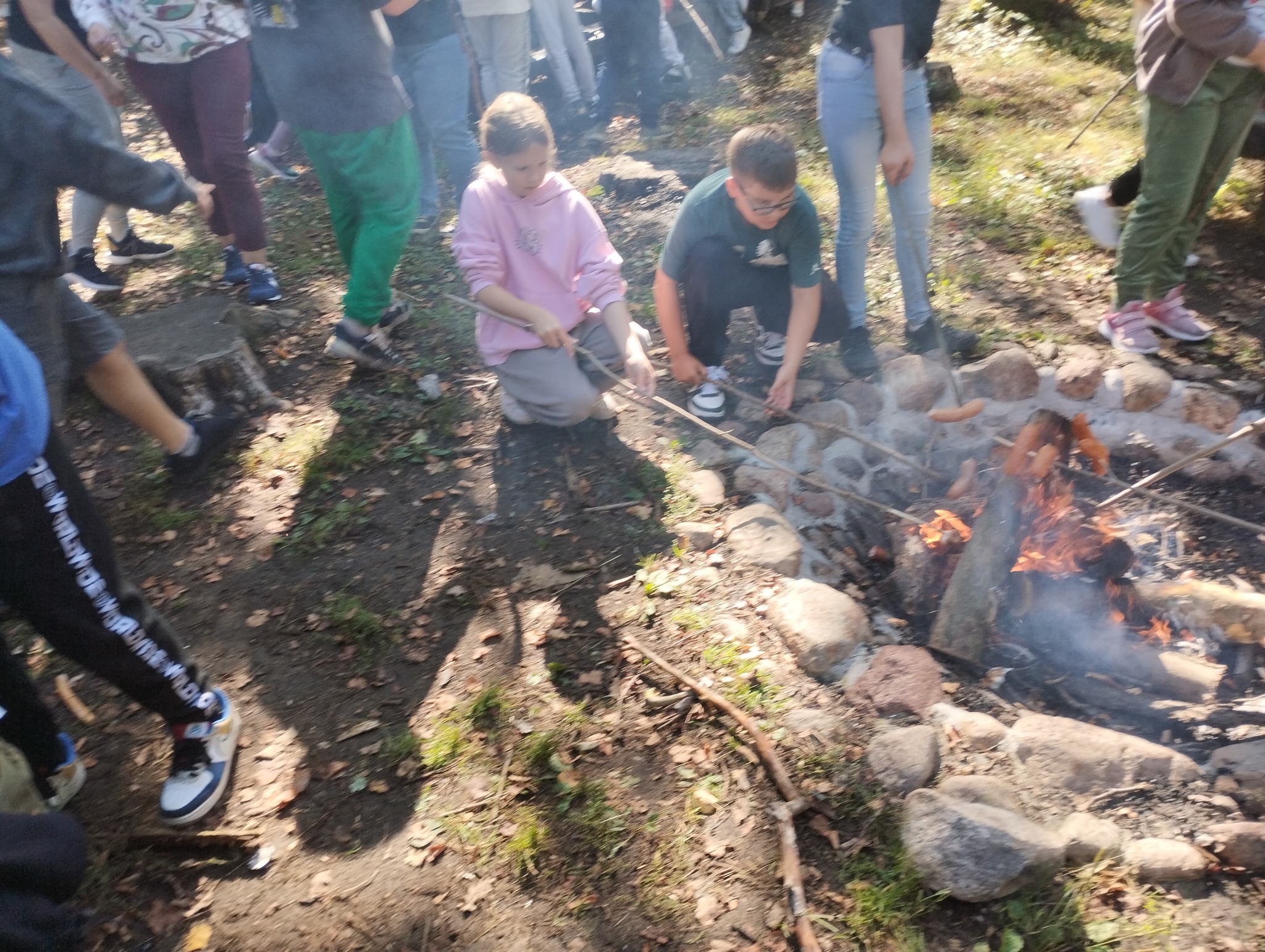 Dzieci podczas spaceru mogły podziwiać różnorodność siedlisk roślin i zwierząt mieszkających w lesie. Podziwiały pięknie zakola rzeki Skrwy oraz zapoznały się dokładnie z regulaminem leśnym. Na koniec wspólnie rozpaliliśmy ognisko, upiekliśmy kiełbaski oraz inne przysmaki.