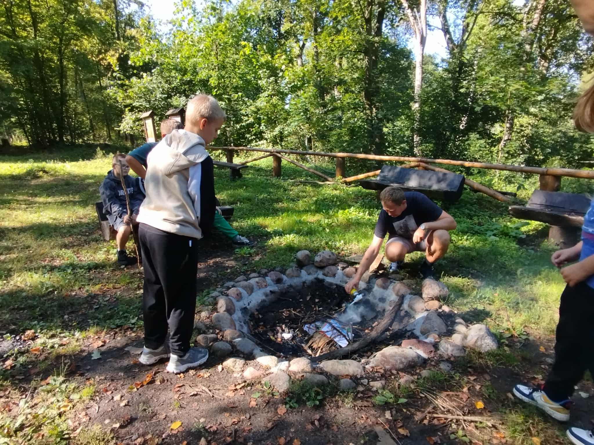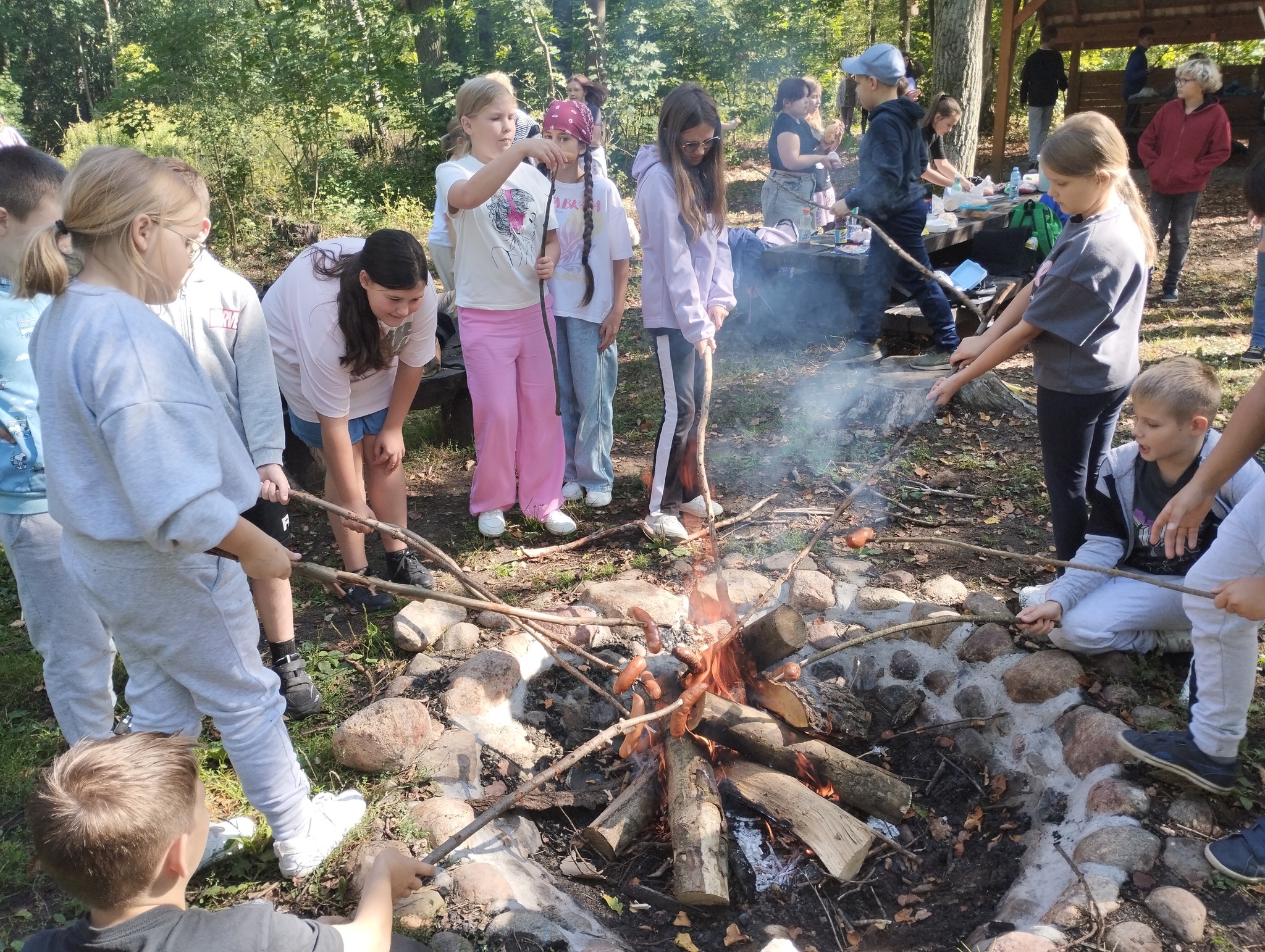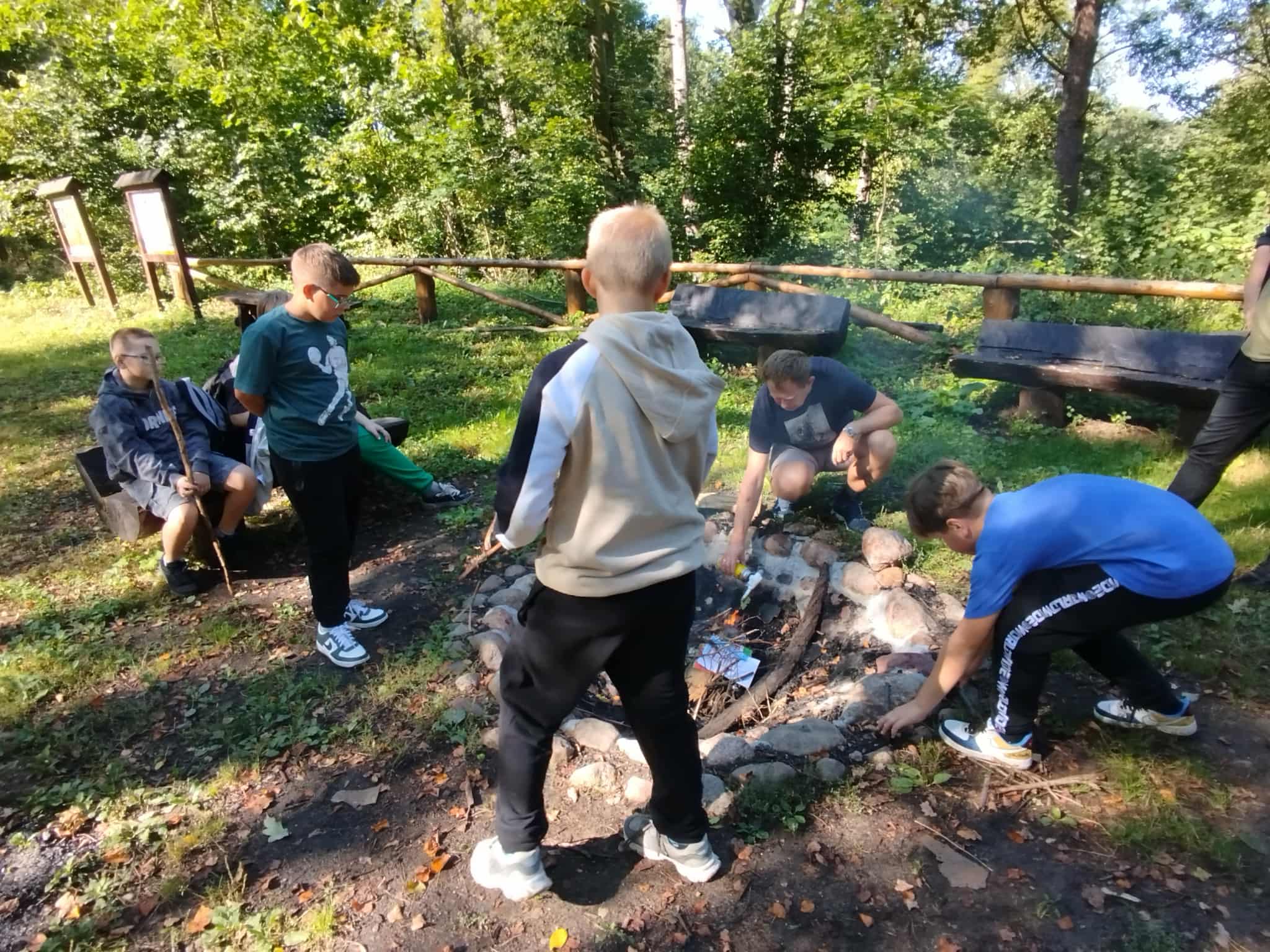 Dzieci podczas spaceru mogły podziwiać różnorodność siedlisk roślin i zwierząt mieszkających w lesie. Podziwiały pięknie zakola rzeki Skrwy oraz zapoznały się dokładnie z regulaminem leśnym. Na koniec wspólnie rozpaliliśmy ognisko, upiekliśmy kiełbaski oraz inne przysmaki.