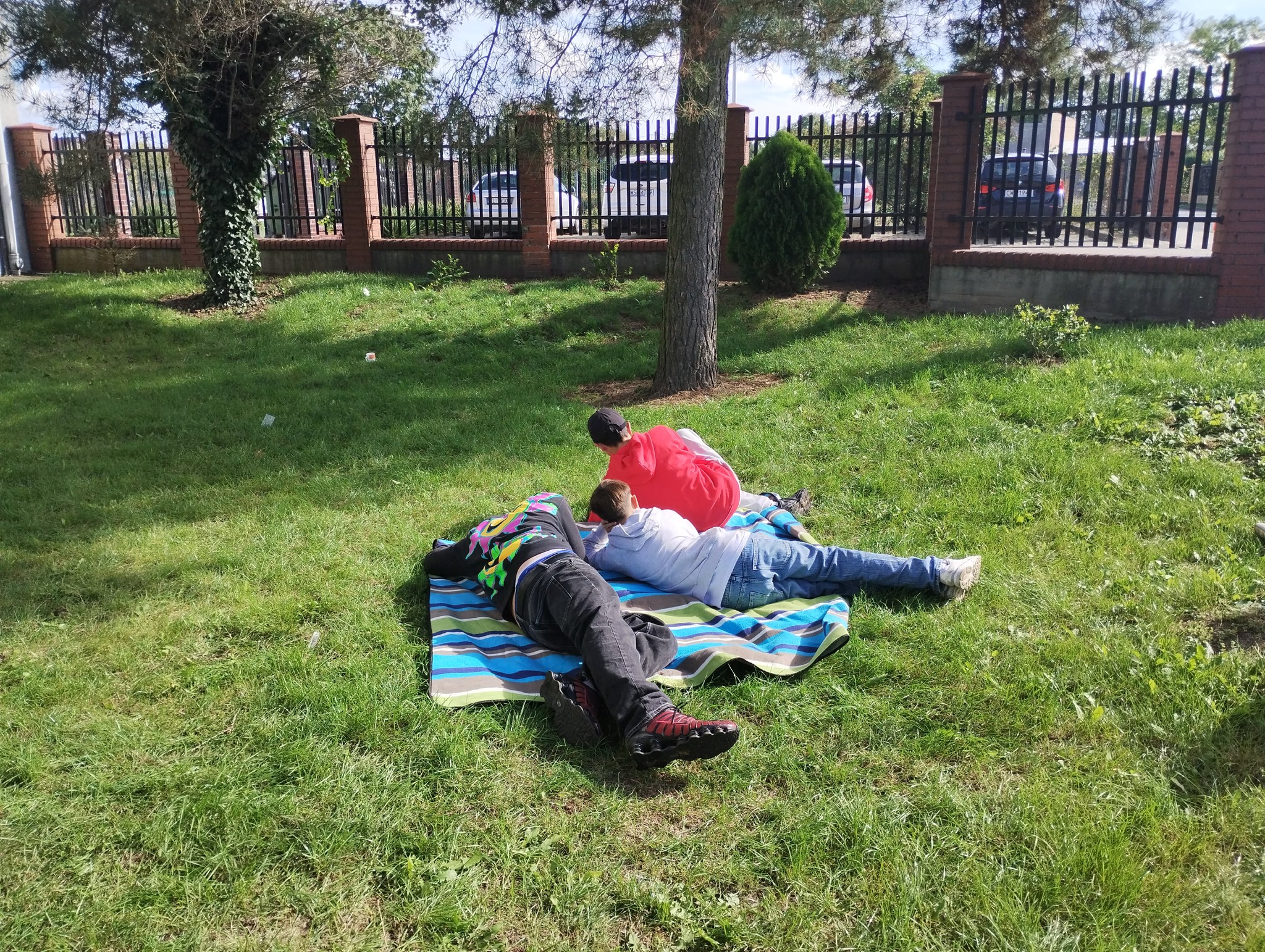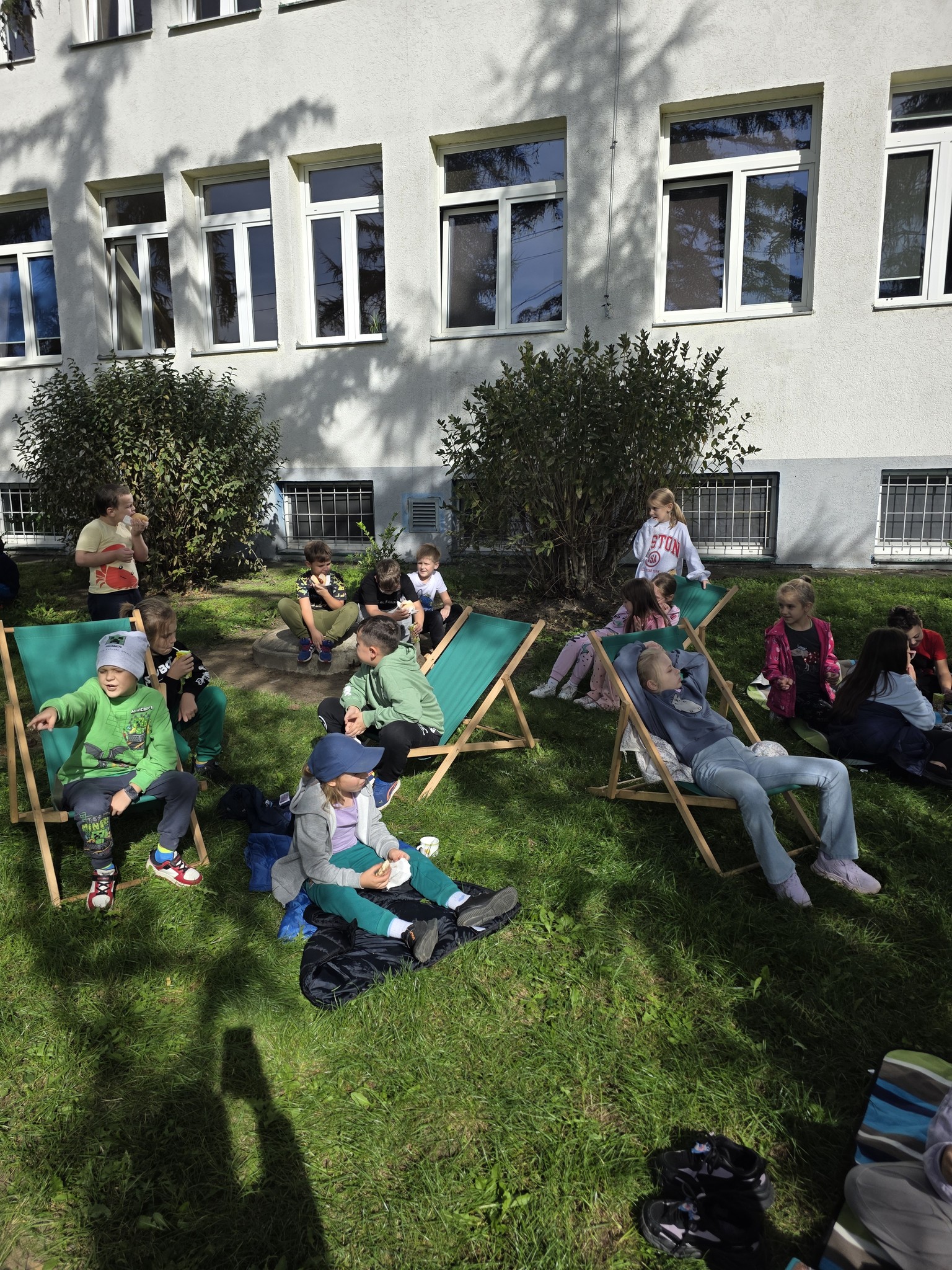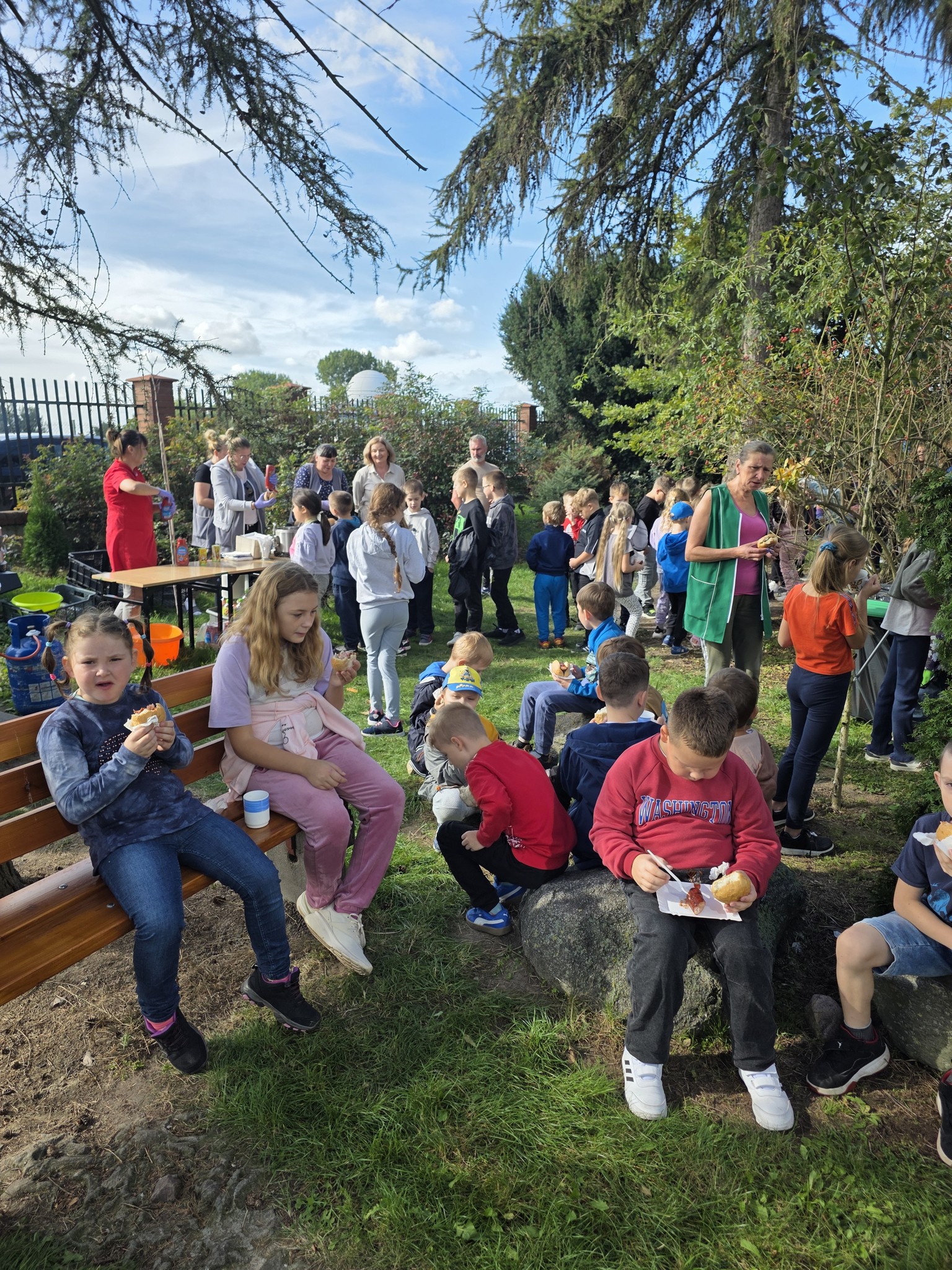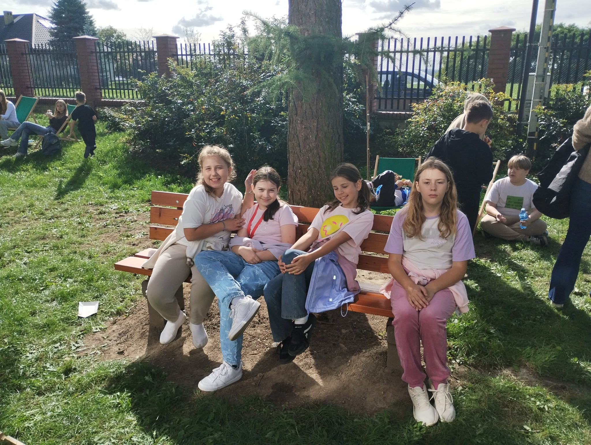 Po zakończonej pracy na uczestników czekał w szkolnym ogrodzie poczęstunek. Piękna, słoneczna pogoda sprzyjała wspólnemu odpoczynkowi na kocach i leżakach, a spotkanie stało się także okazją do symbolicznego powitania pierwszego dnia jesieni.