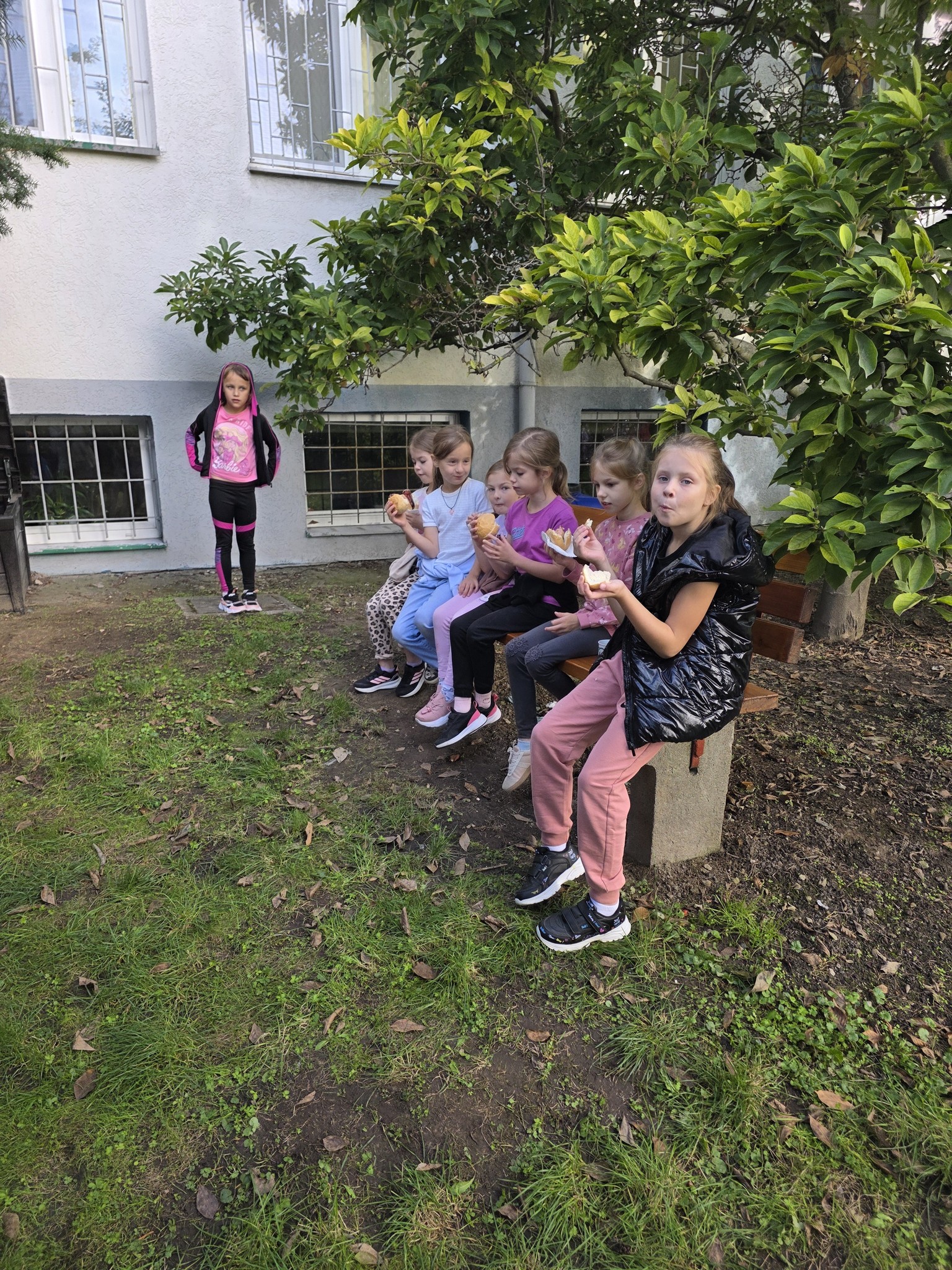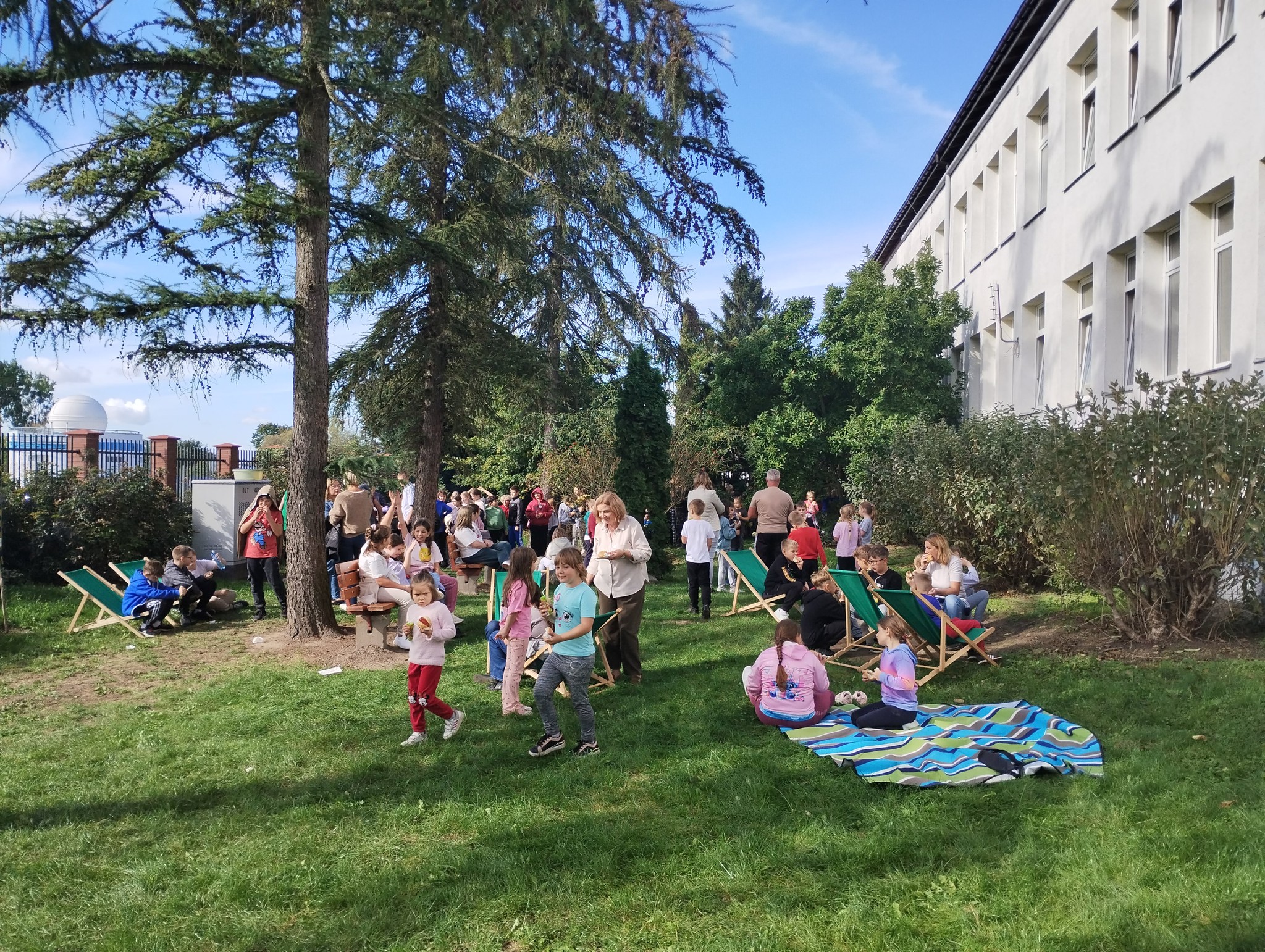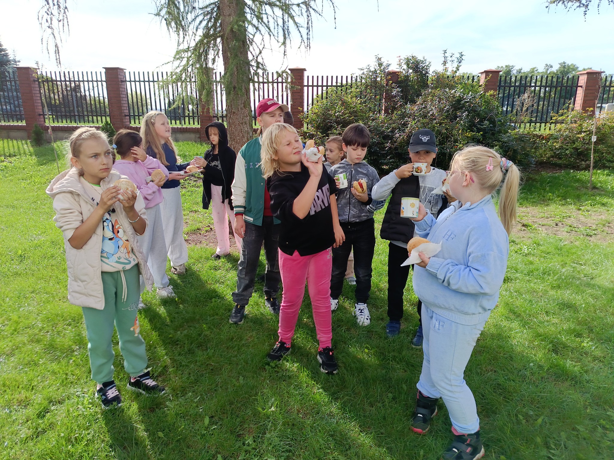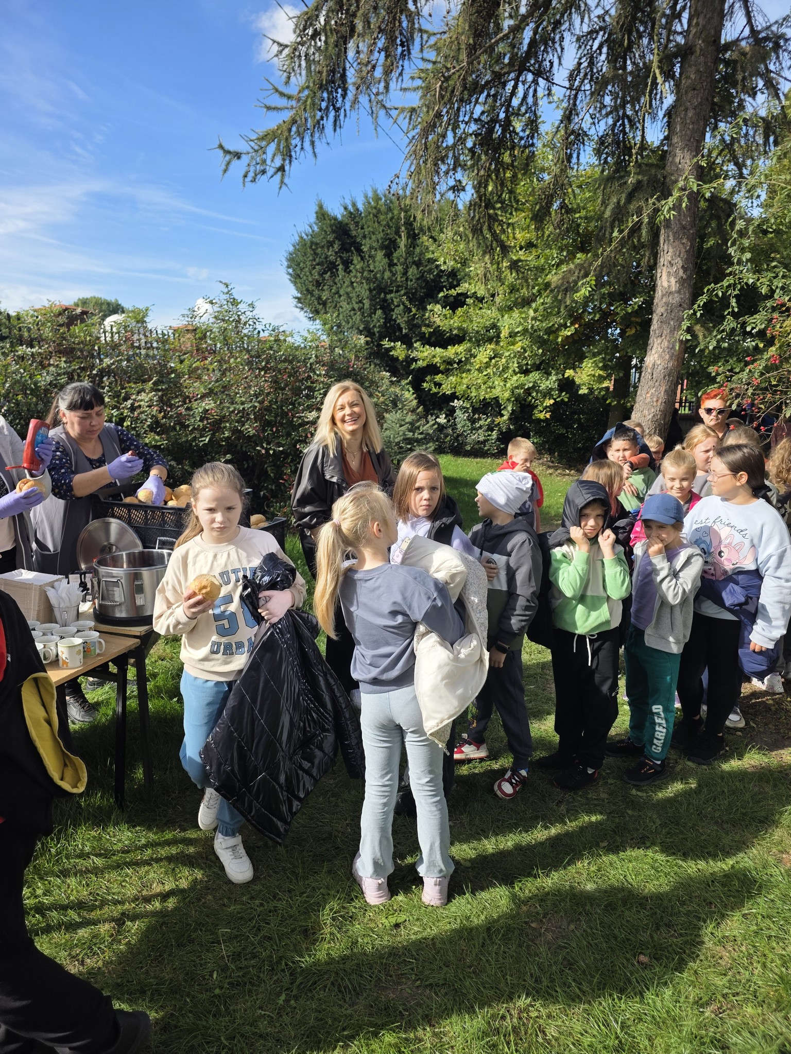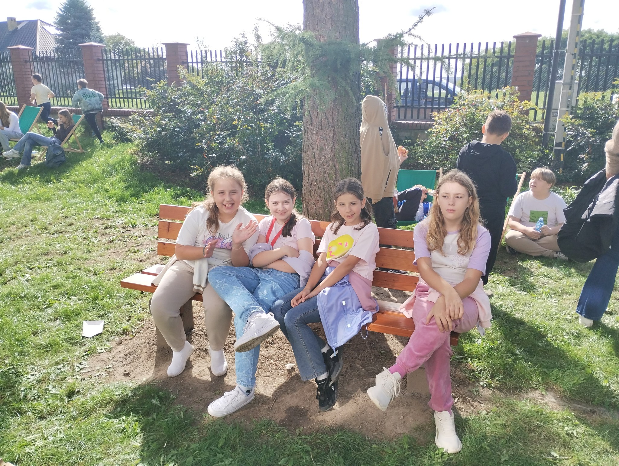 Po zakończonej pracy na uczestników czekał w szkolnym ogrodzie poczęstunek. Piękna, słoneczna pogoda sprzyjała wspólnemu odpoczynkowi na kocach i leżakach, a spotkanie stało się także okazją do symbolicznego powitania pierwszego dnia jesieni.