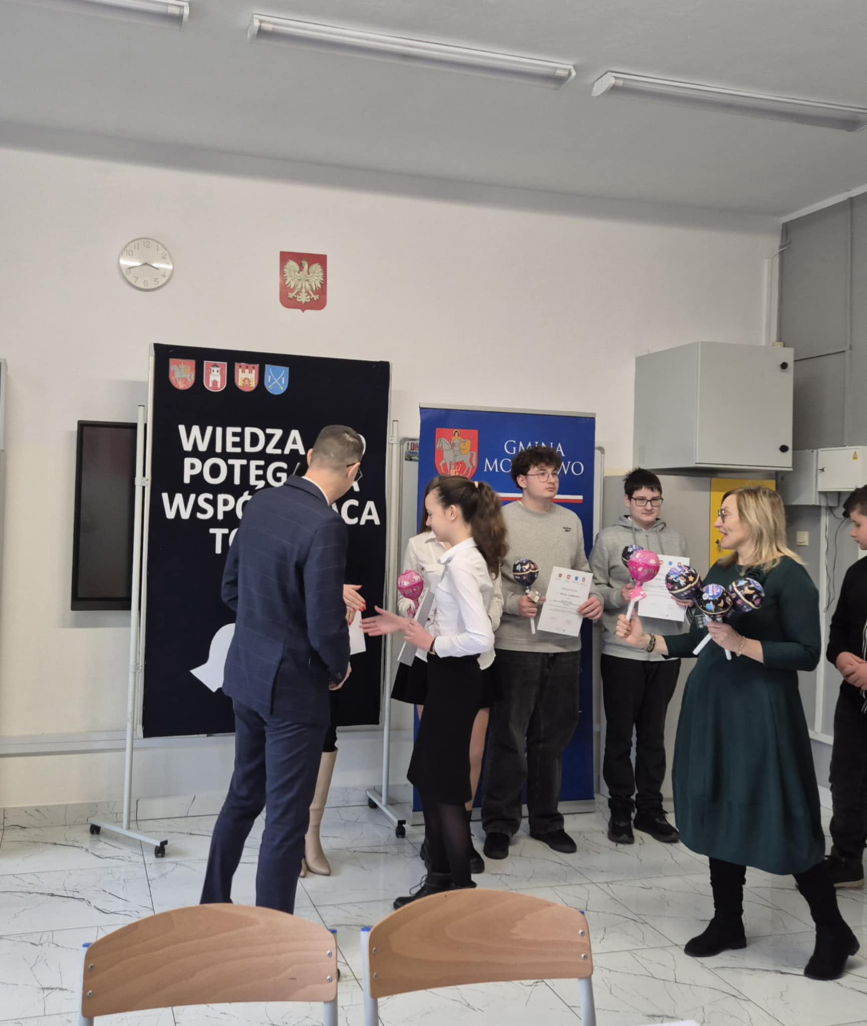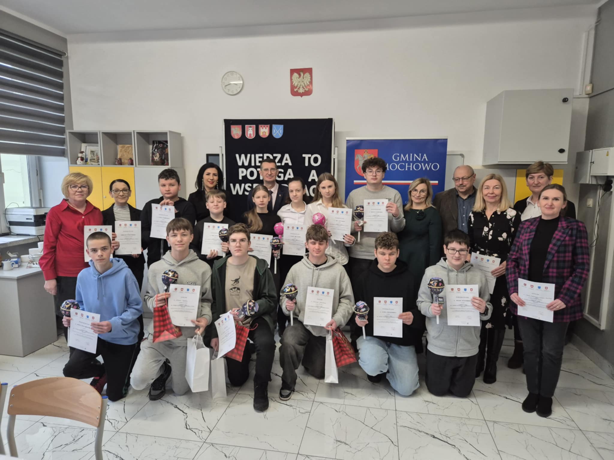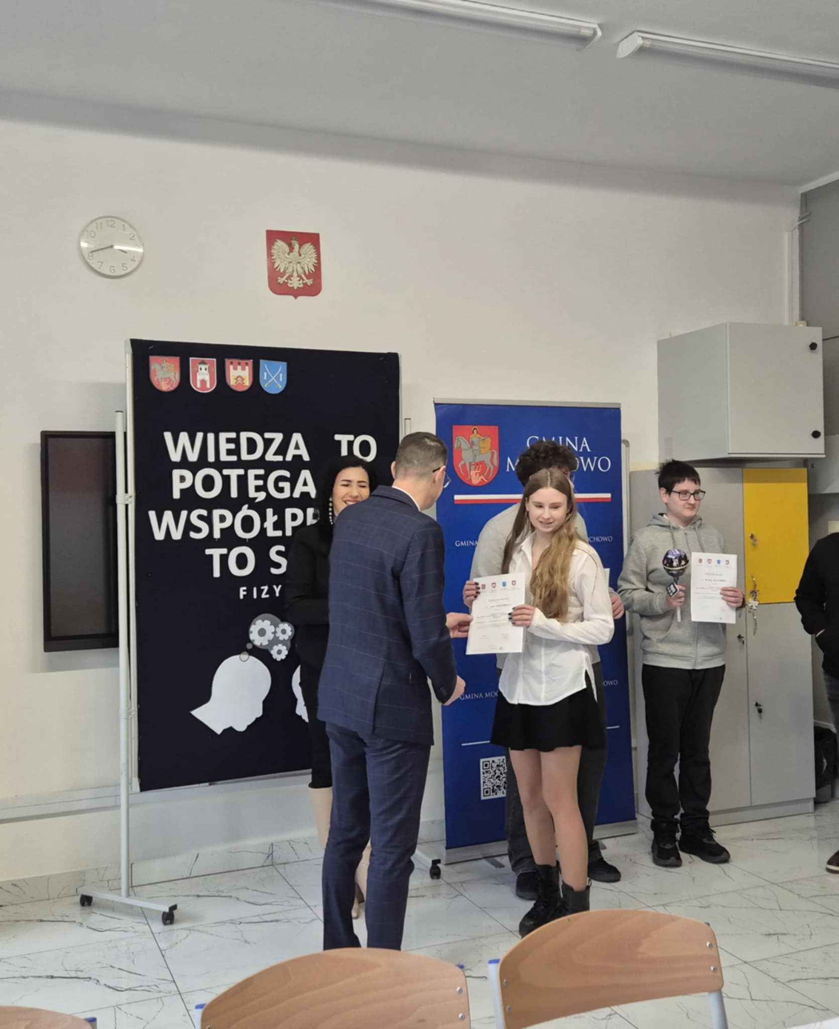 Dnia 16 grudnia 2025r. uczennice klasy VIII: Joanna Michalska i Anna Rogowska wzięły udział w konkursie przedmiotowym z fizyki, pn. „Wiedza to potęga, a współpraca to siła” zorganizowanym przez Szkołę Podstawową im. Jana Pawła II w Mochowie w ramach projektu „Sieci współpracy szkół podstawowych z terenu województwa mazowieckiego i kujawsko - pomorskiego”.