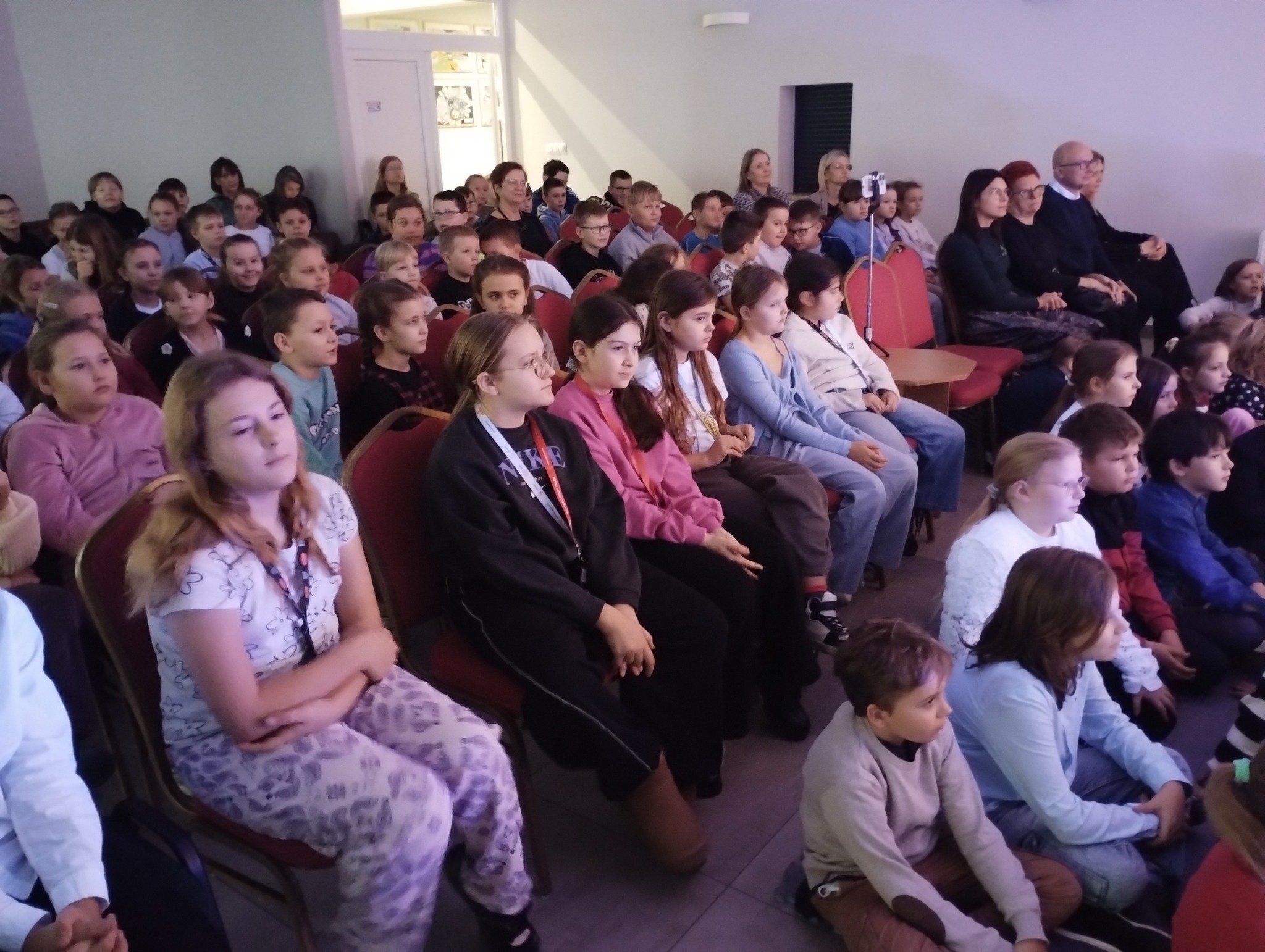 Ponadto uczniowie obejrzeli film przedstawiający, co działo się podczas zajęć i warsztatów, w których uczestniczyli członkowie tego Klubu, do którego w większości należą uczniowie naszej szkoły.