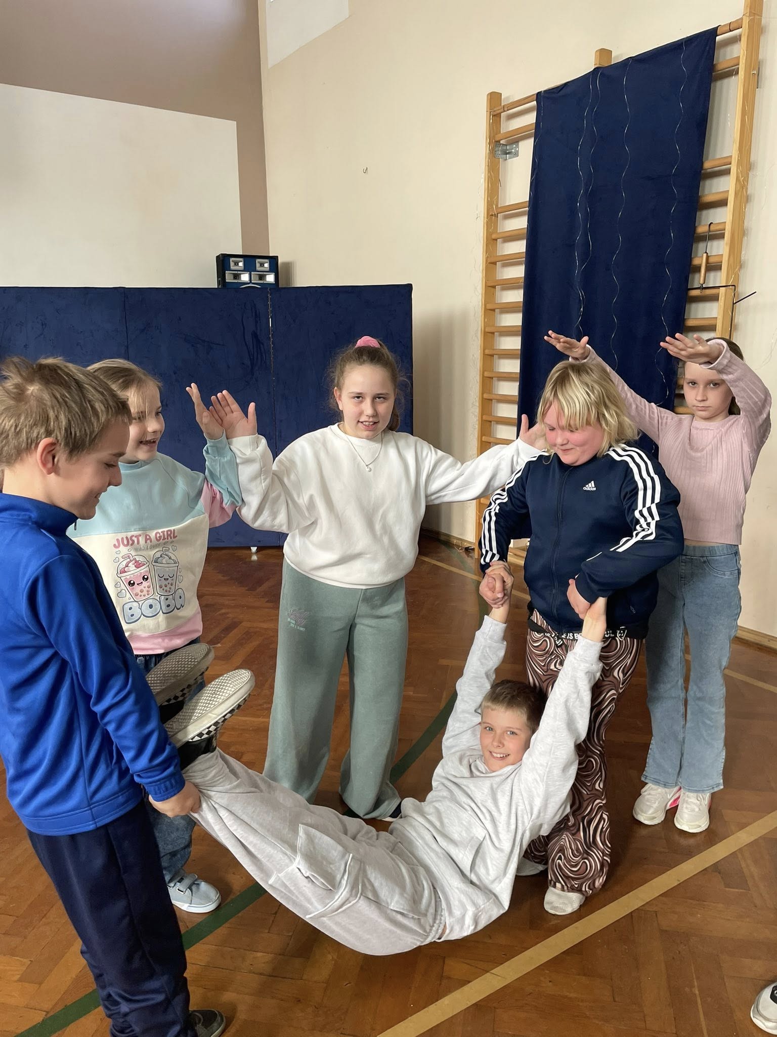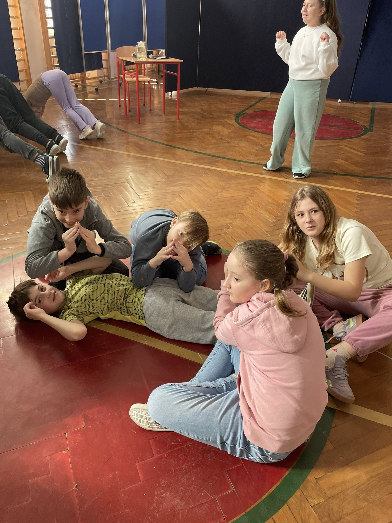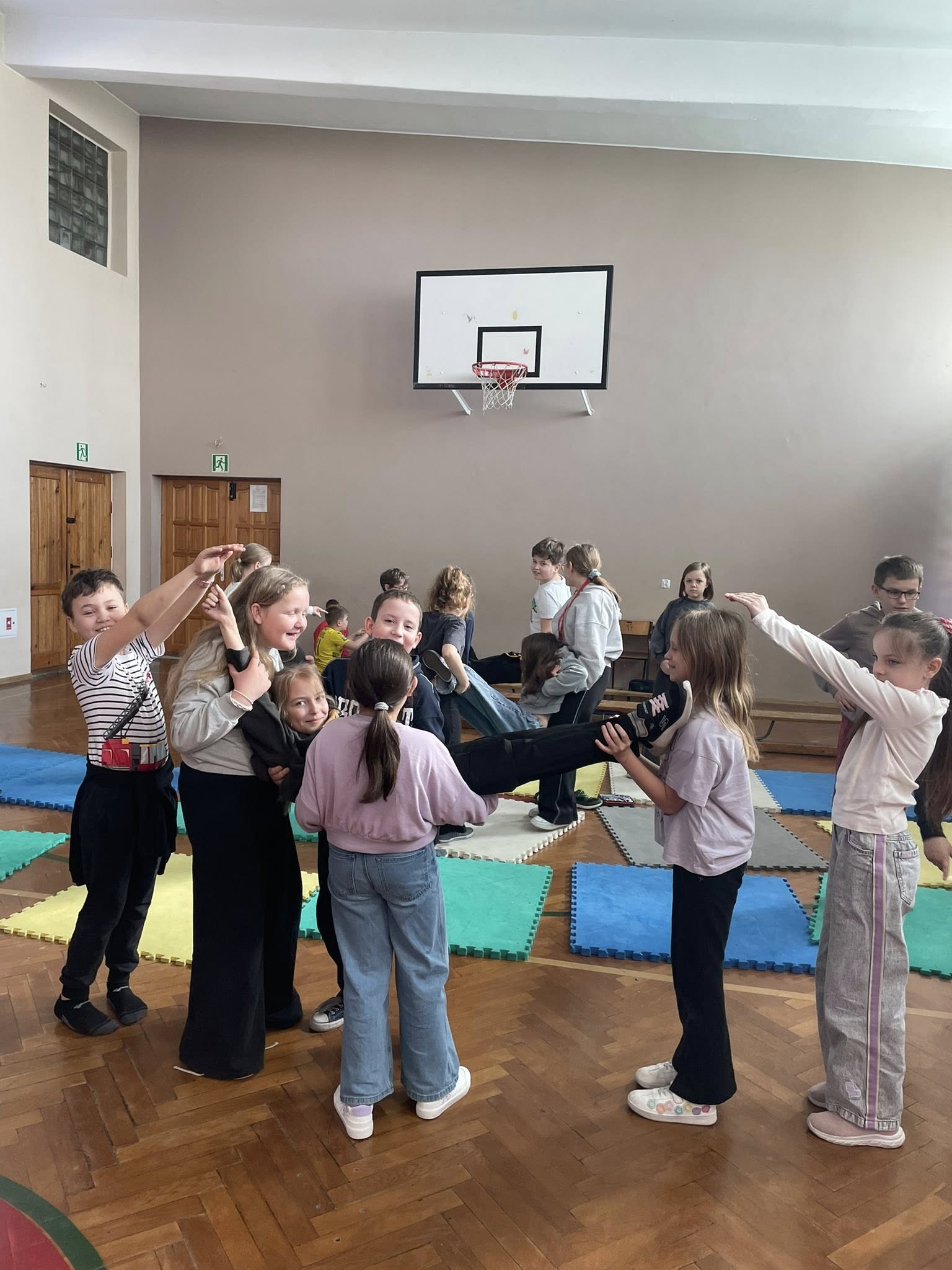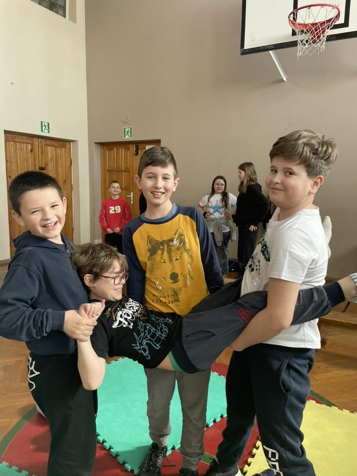 Nie zabrakło ćwiczeń oddechowych, jak i pracy w grupach. Zadaniem dzieci było między innymi stworzenie mostu za pomocą ułożenia ciała. Jak widać, większości się udało, choć nie było to wcale takie łatwe. 🤸🏻.