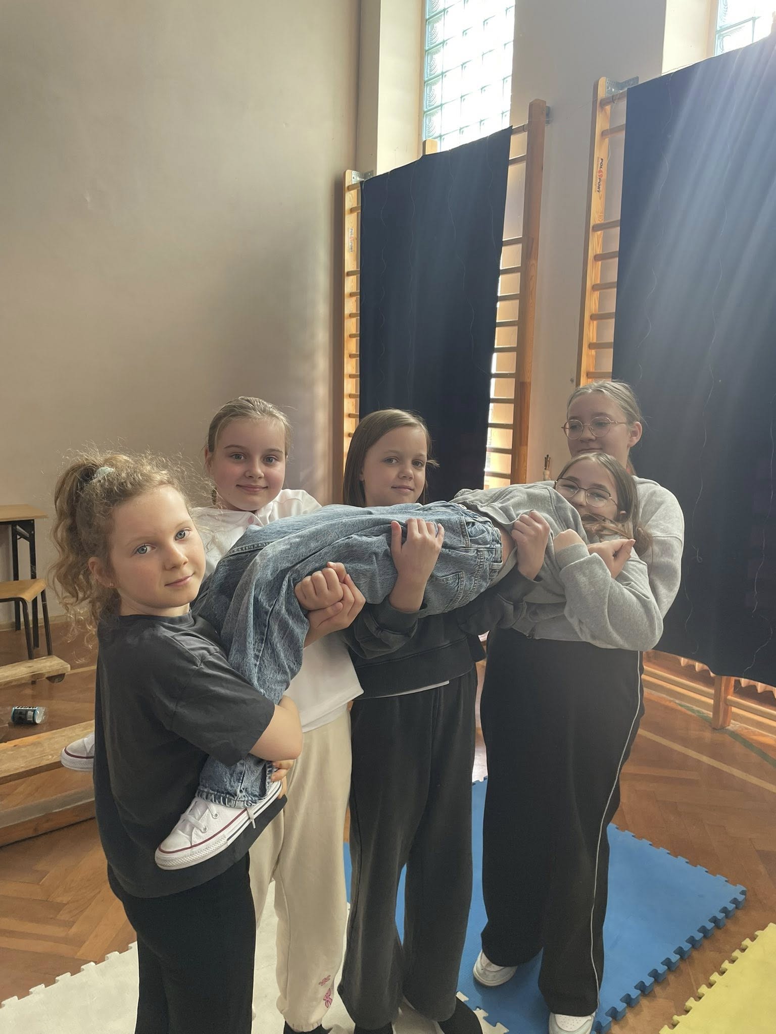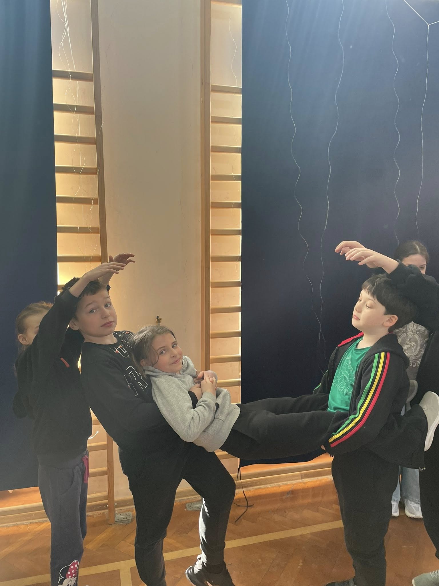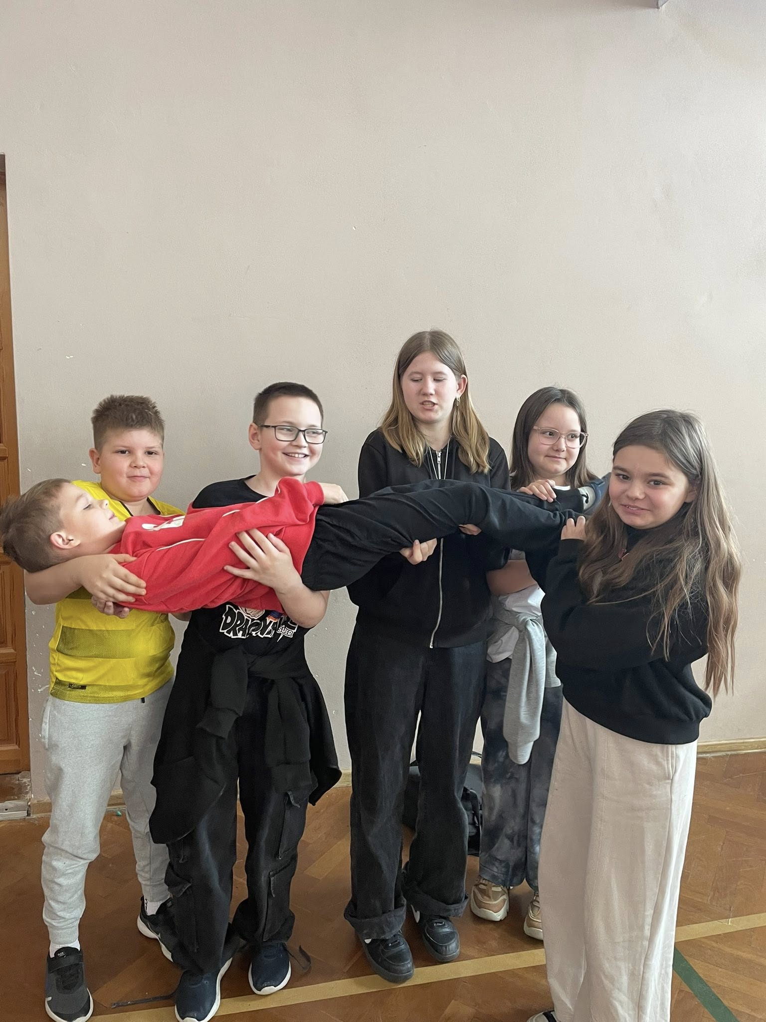 Nie zabrakło ćwiczeń oddechowych, jak i pracy w grupach. Zadaniem dzieci było między innymi stworzenie mostu za pomocą ułożenia ciała. Jak widać, większości się udało, choć nie było to wcale takie łatwe. 🤸🏻.